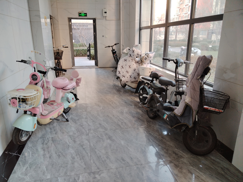 二、单位名称:唐县亿鑫唐朝小区 地址:唐县中山北大街 存在隐患: 1.多处公共门厅违规停放电动自行车。 整改负责人:田万青 整改期限:已当场整改 隐患照片: