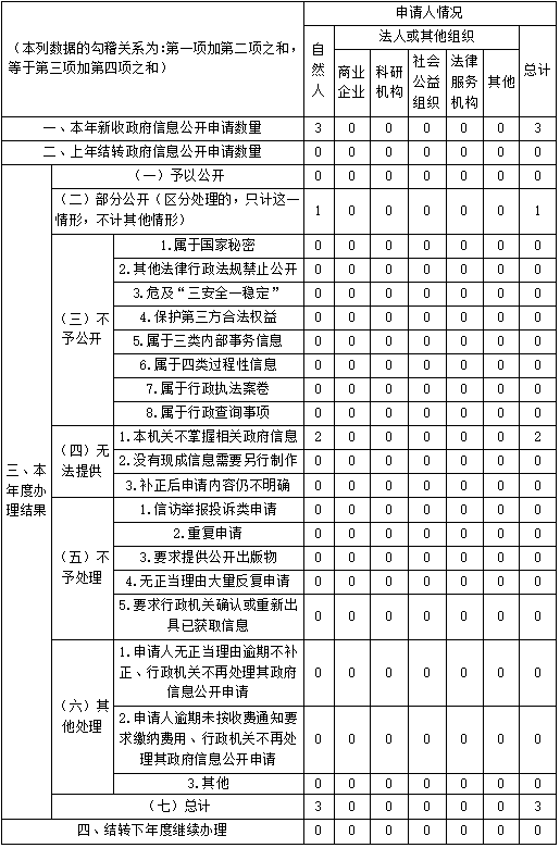 三、收到和处理政府信息公开申请情况